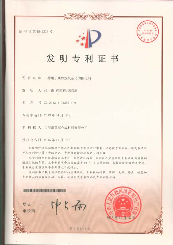 專(zhuān)利三:一種用于炔醇烷氧基化的催化劑