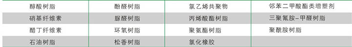 INT 醛樹(shù)脂與絕大多數用于涂料/油墨的樹(shù)脂有良好的相容性。包括下列樹(shù)脂: